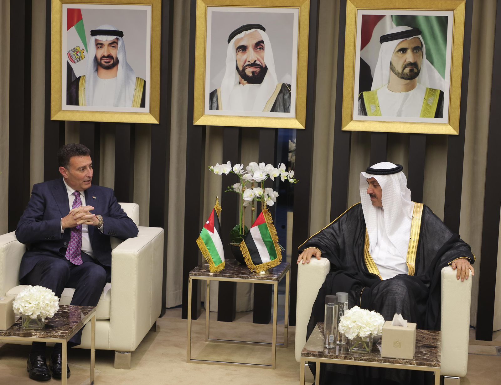ويضم الوفد المرافق رئيس كتلة الاتفاق النائب ميرزا بولاد ورئيس اللجنة القانونية رئيس لجنة الأخوة الأردنية الإماراتية غازي ذنيبات والنواب: خير أبو صعيليك وعمر العياصرة ودينا البشير.