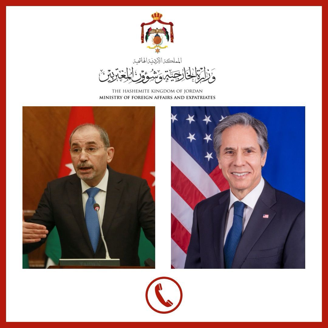 جاء ذلك خلال اتصال هاتفي تلقاه الصفدي من وزير الخارجية الأميركي أنتوني بلينكن، جيث ركز على الجهود المبذولة للتوصل لوقف لإطلاق النار في غزة ومفاوضات تبادل الأسرى والمحتجزين، إضافة إلى جهود إيصال مساعدات إنسانية كافية وعاجلة لجميع أنحاء القطاع.