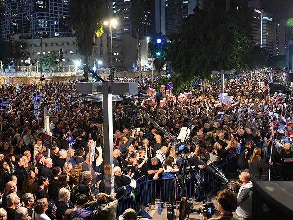 فرقت الشرطة الإسرائيلية مظاهرة حاشدة في تل أبيب، باستخدام سيارة ضخ مياه، وأعادت فتح شارع رئيسي.