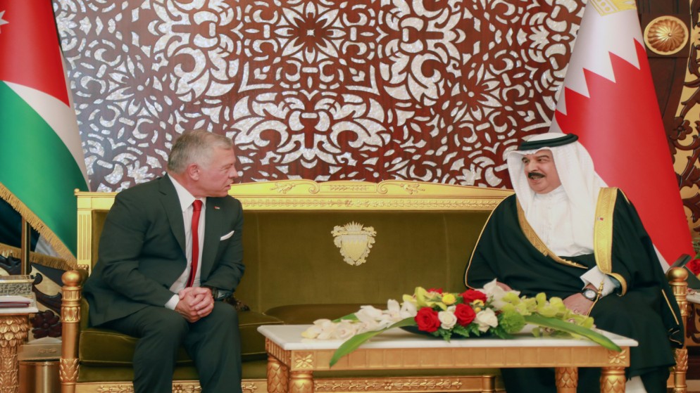 بحث جلالة الملك عبدالله الثاني وجلالة الملك حمد بن عيسى آل خليفة، ملك مملكة البحرين خلال اتصال هاتفي، الاثنين، الأوضاع الخطيرة في غزة.