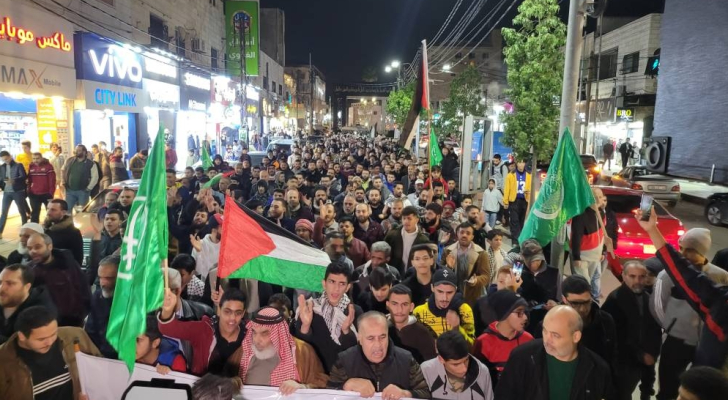 خرج العشرات عقب صلاة التراويح من مسجد بلال بن رباح في الحي الشرقي من مدينة إربد، الثلاثاء، بمسيرة تضامنية مع الشعب الفلسطيني، وتنديدا باستمرار العدوان الوحشي الذي تشنه قوات الاحتلال على قطاع غزة مستهدفا المدنيين والأبرياء العزل.