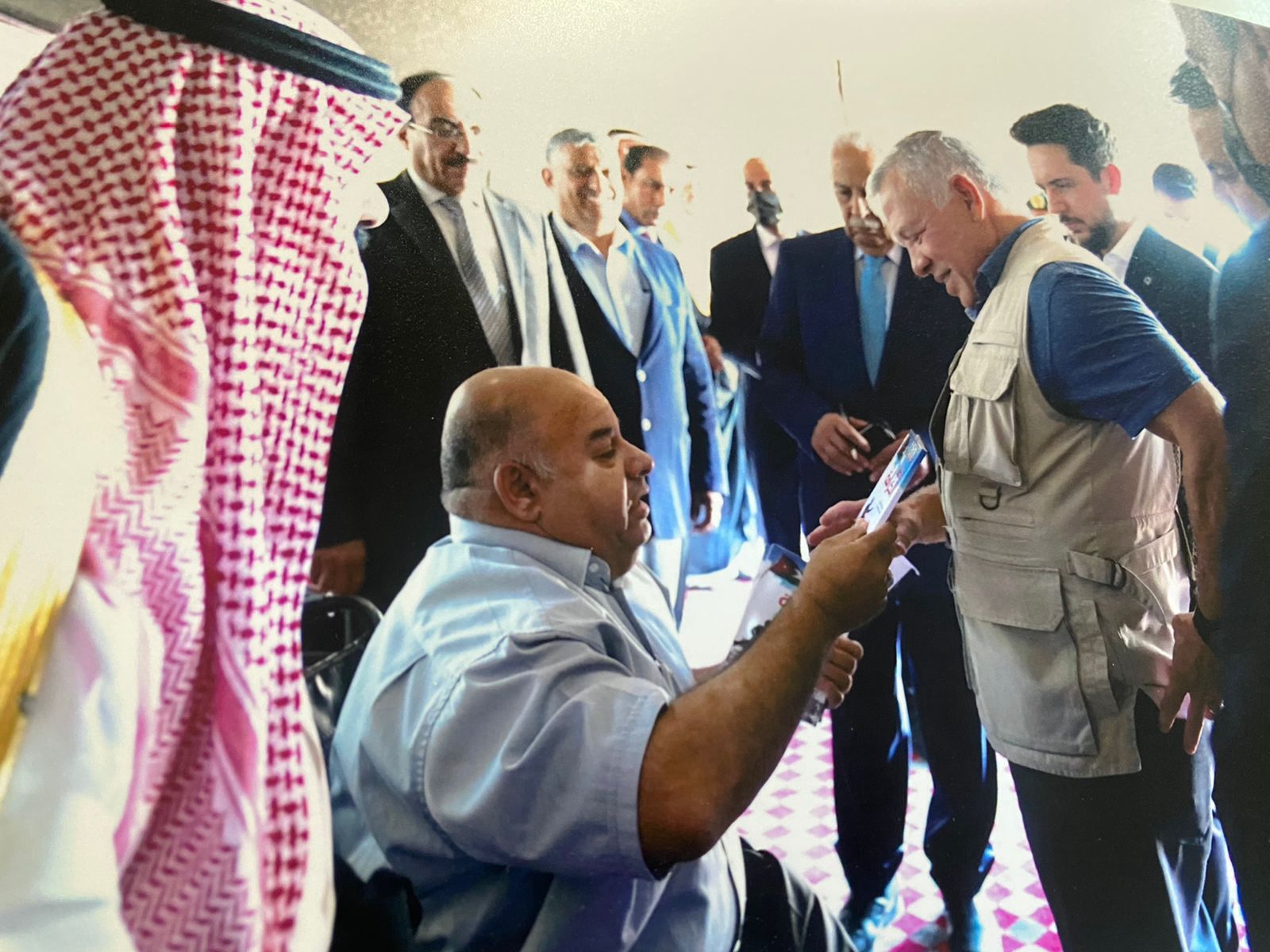 يحق لنا اليوم وقبل كل يوم ، ويحق لنا بعد اليوم... وحتى الزمن الطويل ، ان نزين لك السماء قبل الارض ، اطفالا وشبابا وشيوخا ، وحتى اصحاب الآهات (مرضى ومعاقين) ، يخرجون جميعهم في انتظارك.. ايها الاب الحنون ، نعلم ان بجعبتك اليوم الآمال ، والمشاريع الوطنية ، نعلم ان تسهر الليل مع النهار ، لراحة طفل يتيم ، ولرفع الاحزان والالام عن ارملة ثكلى ، نخرها الزمن ، فكنت معيلها بعد الله تعالى نعلم انك الوطن لمن لا وطن له ، كيف لا، وها هي بيوت الفقراء والمساكين لشعبك الحبيب في كل ارجاء الوطن انها شيم اجدادك اهل السقاية والرفادة ، وكان ابو بكر الصديق وعمر بن الخطاب وعثمان بن عفان وعلي بن ابي طالب - رضي الله عنهم - يتسابقون على خدمة المرضى والمعاقين من ابناء المؤمنين ، ها هو شعبك يا مولاي ينتظر طلتك البهية يخرجون قبل بزوغ اشعة الشمس منتظرين الاب الكبير.. وارث راية العز والفخر والحرية ، راية الثورة العربية الكبرى والتي حررت العرب من كيد الكائدين وظلم الظالمين الى مراتب الحرية والاستقلال لا تهمهم اشعة الشمس.... ولا حتى طول الانتظار..