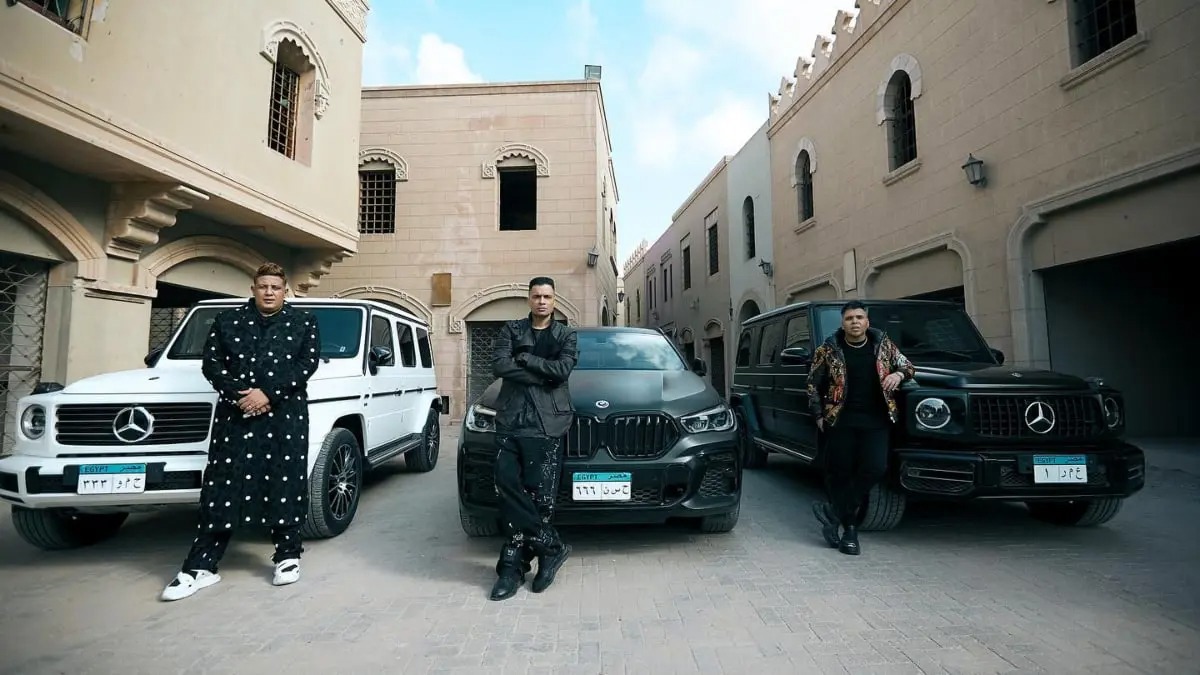 وفي فيديو الكليب للأغنية التي تحمل عنوان "أنا في البلد عضمة"، عرضت قبل أيام، ظهر الثلاثي أمام مركبات فارهة تحمل لوحات "ح س ن، ح م و، ع م ر"، وهي الأحرف الثلاثة المكونة منها أسماؤهم، ما أوحى للجمهور بأن لهم نفوذًا على غير الحقيقة.