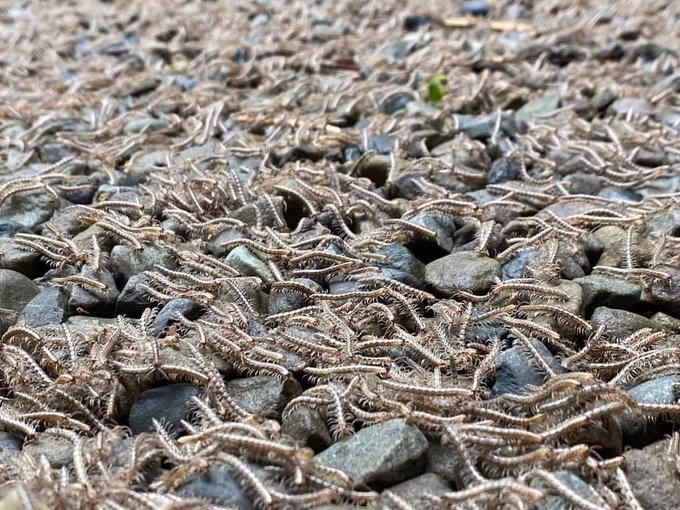 انتشر عبر مواقع التواصل الاجتماعي فيديو لحشرات زاحفة من فصيلة "أم أربعة وأربعين" بإحدى الغابات في تايوان، وسط تحذيرات من أنها علامة على حدوث الزلازل.