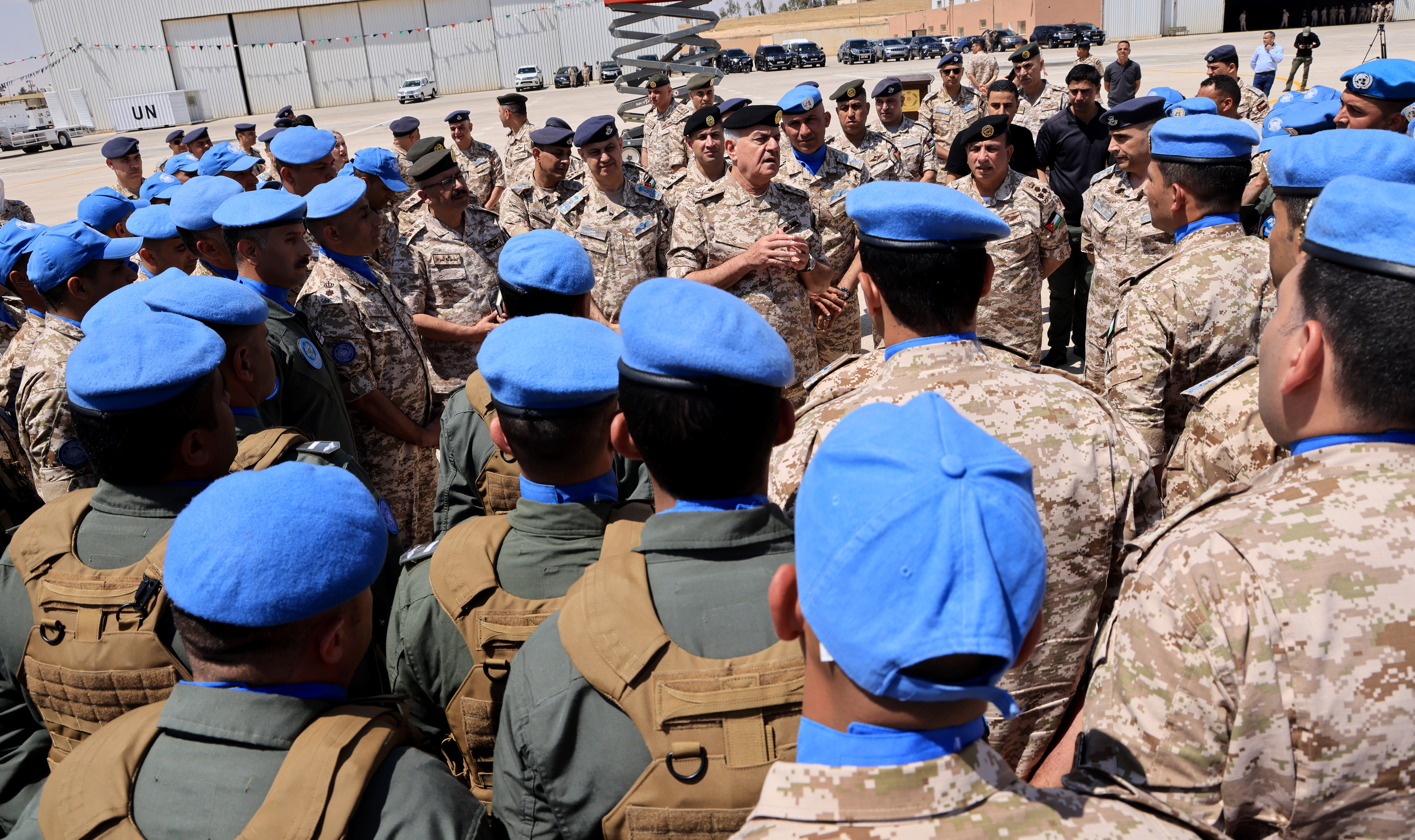 ودّع رئيس هيئة الأركان المشتركة اللواء الركن يوسف أحمد الحنيطي، الثلاثاء، في قاعدة الملك عبد الله الثاني الجوية، وحدة الطائرات العامودية الأردنية الكونغو/1، للمشاركة في مهام قوات حفظ السلام الدولية في جمهورية الكونغو الديمقراطية، بحضور عدد من كبار ضباط القوات المسلحة الأردنية ــ الجيش العربي.
