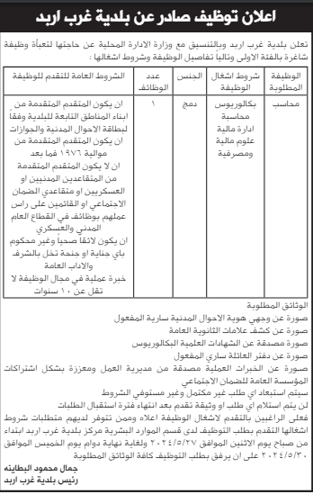 أعلنت عدة بلديات بالتعاون مع وزارة الإدارة المحلية، عن وظائف شاغرة، تالياً التفاصيل: