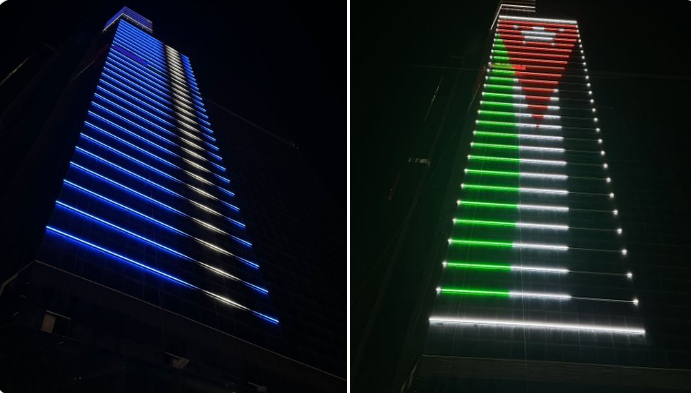 نشر معالي امين عمان د. يوسف الشواربة، عبر حسابه الخاص على منصة "X"، مجموعة للصور التي تظهر اضاءة أبراج السادس بالعلم الأردني وشعار اليوبيل وذلك ضمن احتفالات المملكة بالأعياد الوطنية.