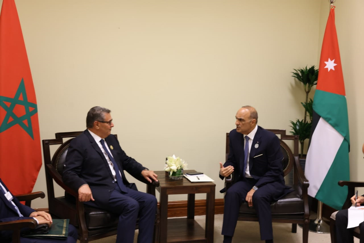عقد رئيس الوزراء الدكتور بشر الخصاونة، اليوم الثُّلاثاء، على هامش مؤتمر الاستجابة الإنسانيَّة الطَّارئة لغزَّة، المنعقد في البحر الميِّت، مع رئيس الوزراء المغربي عزيز أخنوش.