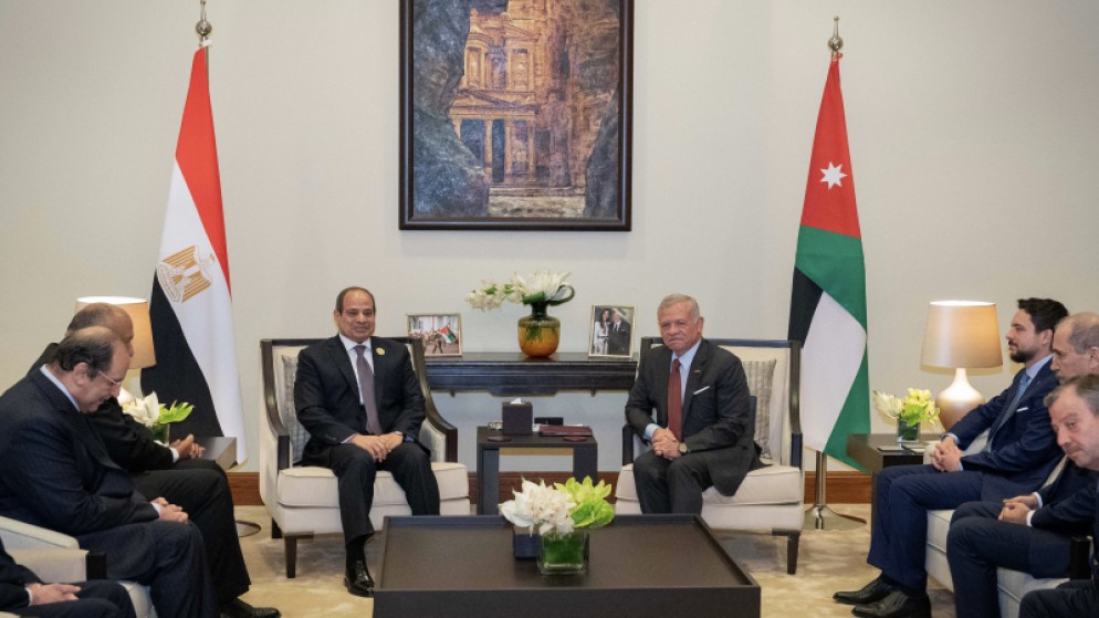وشدد جلالة الملك خلال لقائه الرئيس المصري عبدالفتاح السيسي على هامش المؤتمر المنعقد في البحر الميت، على ضرورة معالجة العقبات أمام إدخال المساعدات للقطاع بشكل كافٍ وعاجل.