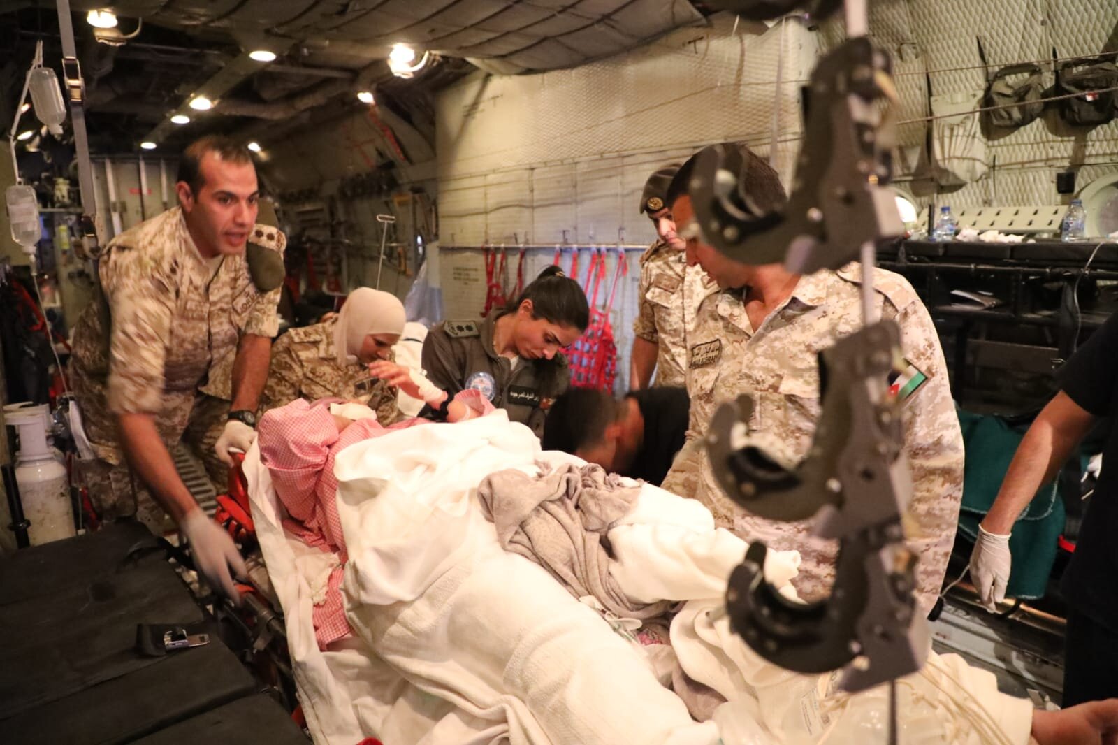 وبيّن قائد طبابة سلاح الجو الملكي أنه تم إخلاء 5 أفراد من عائلة أردنية عبر طائرة مزودة بطاقم طبي متخصص، مضيفاً أن حالة اثنين من المصابين حرجة، فيما تبين أن الحالة العامة للثلاثة الآخرين متوسطة.