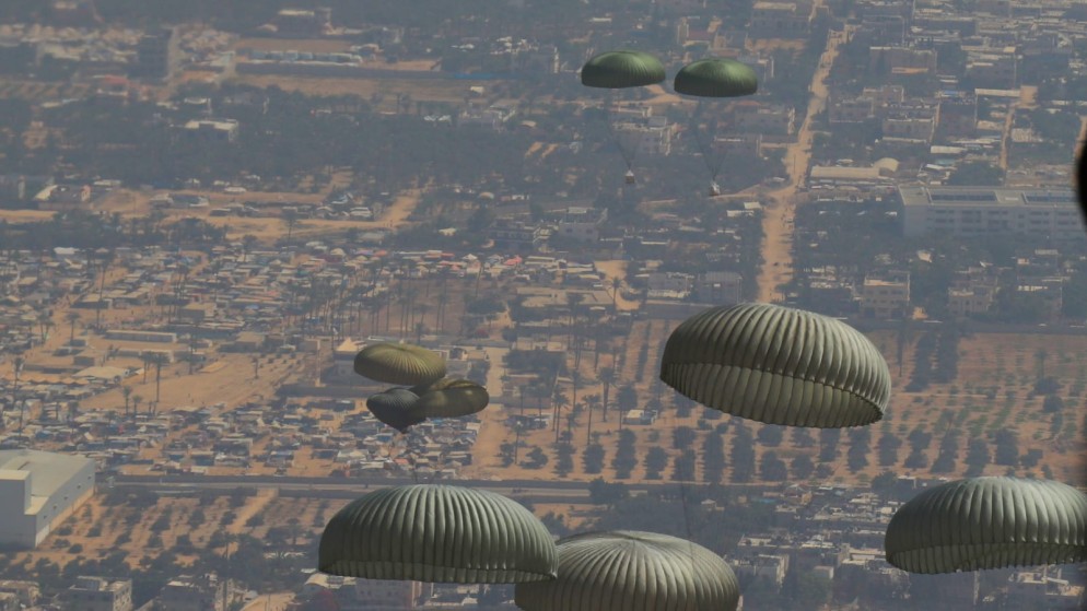 استكمالا للجهود الأردنية لمساندة الأهل في قطاع غزة، الذين يعانون جراء الحرب الإسرائيلية المستمرة منذ أشهر، نفّذت القوات المسلحة الأردنية – الجيش العربي، الجمعة، 3 إنزالات جوية لمساعدات إغاثية وإنسانية وغذائية استهدفت عدداً من المواقع جنوب قطاع غزة.