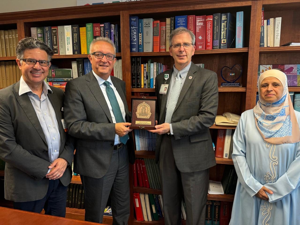 كما والتقى الوفد بالدكتورة كريستين كيلي، أحد الأطباء المقيمين في قسم الأطفال والتي ستزور كلية الطب في جامعة اليرموك بزيارة بحثية وعلمية.