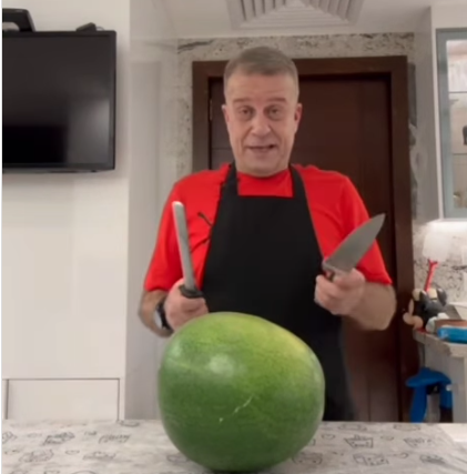 وفي التفاصيل، شارك منير عبر حسابه في منصة "إنستغرام"، مقطع فيديو يكشف فيه رغبته في ذبح أضحية، لكن هذه المرة استبدل فيها الخاروف بالبطيخة.