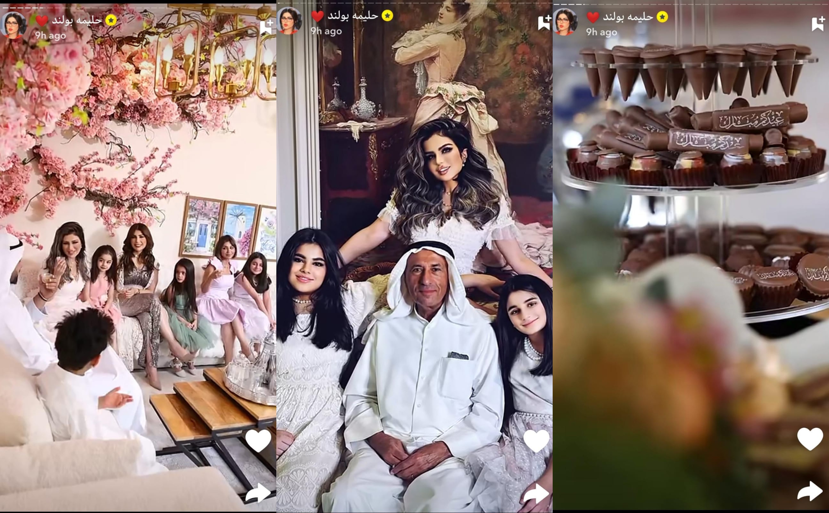 احتفلت الإعلامية الكويتية حليمة بولند، بعيد الأضحى المبارك على طريقتها الخاصة حيث قامت بمشاركة مجموعةً من الصور ومقاطع الفيديو التي جمعتها بابنتيها ووالدها وبعضٍ من أفراد أسرتها .