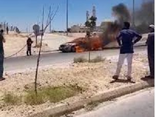 احتراق مركبة أمام جامعة الحسين في معان .. فيديو