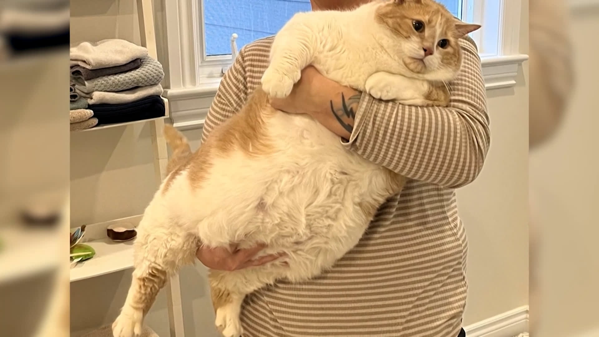 وفي التفاصيل، أكدت الوكالة، أنه وعندما أنقذته كريستين ساغاين في وقت سابق من هذا العام، وضعته على نظام غذائي، وتقول إن "هدفنا ليس فقط إنقاص الوزن ولكن أن يكون قطًا قادرًا على القفز على الأشياء والاستمتاع بحياته. أعني، إنه يبلغ من العمر 7 سنوات فقط. لا يزال لديه الكثير من الوقت المتبقي في حياته ونريد التأكد من أنه يستمتع به".