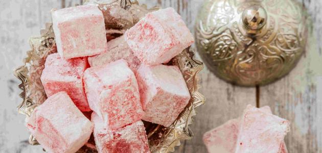 غمّسي مكعبات الحلقوم في مزيج من السكر البودرة والنشا، أو رشّيها بالمكسرات المُفرومة حسب الرغبة .