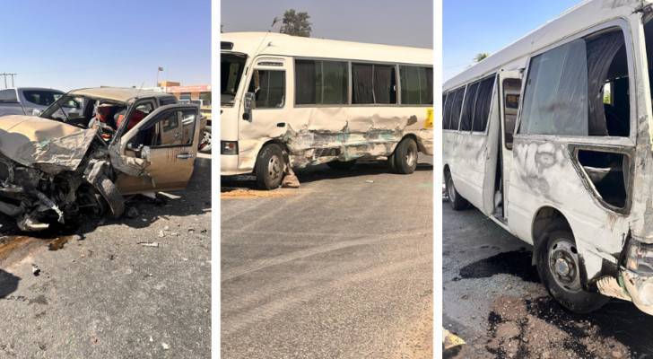 21 إصابة بحادث تصادم حافلة و"بك أب" في المفرق
