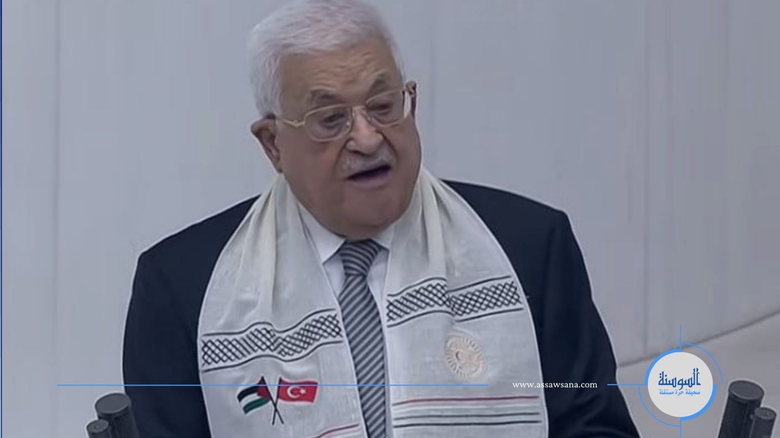 عباس أمام البرلمان التركي وصور هنية يقتبس من محمود درويش: أمريكا هي الطاعون والطاعون أمريكا
