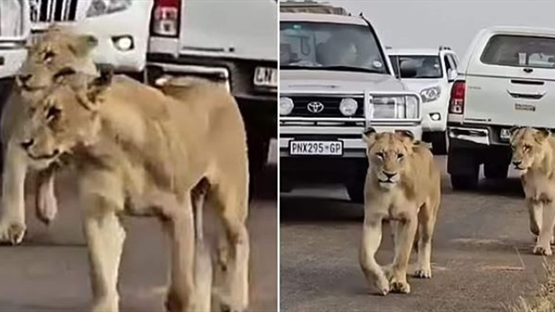 وفي التفاصيل، توقفت معظم الشاحنات على الطريق عند الحدود الواقعة بين ساتارا وأوليفانتس بسبب مرور مجموعة من اللبؤات، ولكن أحد السائقين نفذ صبره بسرعة وحاول تجاوزها ولكنه اصطدم بأحدها من الخلف.