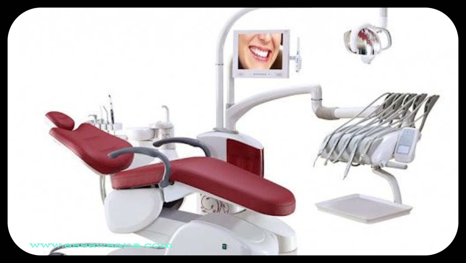 3. الكاميرا: كاميرا فيديو صغيرة تُدخل بداخل الفم لرؤية الأسنان وأنسجة اللثة، وتكون مرتبطة بشاشة لعرض الصور الملتقطة.