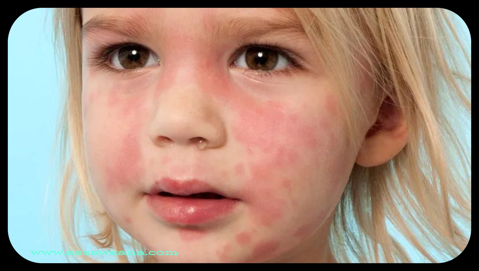- الطفح الجلديّ (بالإنجليزية: Skin Rash)، وغالباً ما يظهر بعد 12-48 ساعة من ظهور الأعراض السابقة، ويمكن القول إنّ الطفح يبدو كحروق الشمس على الأذنين، والرقبة، والكوعَين، وباطن الأفخاذ وأصلها، وغيرها، وعلى الرغم من نُدرة تأثّر الوجه بهذا الطفح؛ إلا أنّ الوجنتَين قد تتأثّران عند بعض الأشخاص وقد تبدو المنطقة حول الفم شاحبةً. ومن الجدير بالذكر أنّ الطفح الجلديّ يختفي في الغالب بعد مرور ستة أيام.