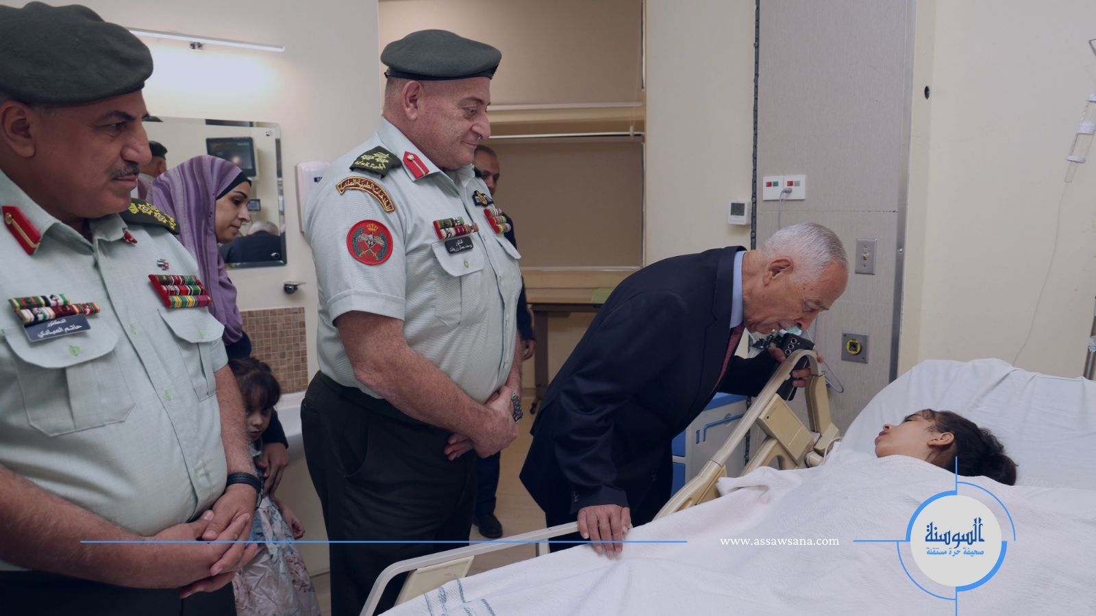 مندوبًا عن جلالة الملك عبدالله الثاني، اطمأن رئيس الديوان الملكي الهاشمي يوسف حسن العيسوي، السبت، على الوضع الصحي للطفلة لميس العطار، التي تم إجلاؤها برًا، أمس الأول، بتوجيهات ملكية، من منطقة دير البلح في قطاع غزة للعلاج في مدينة الحسين الطبية.