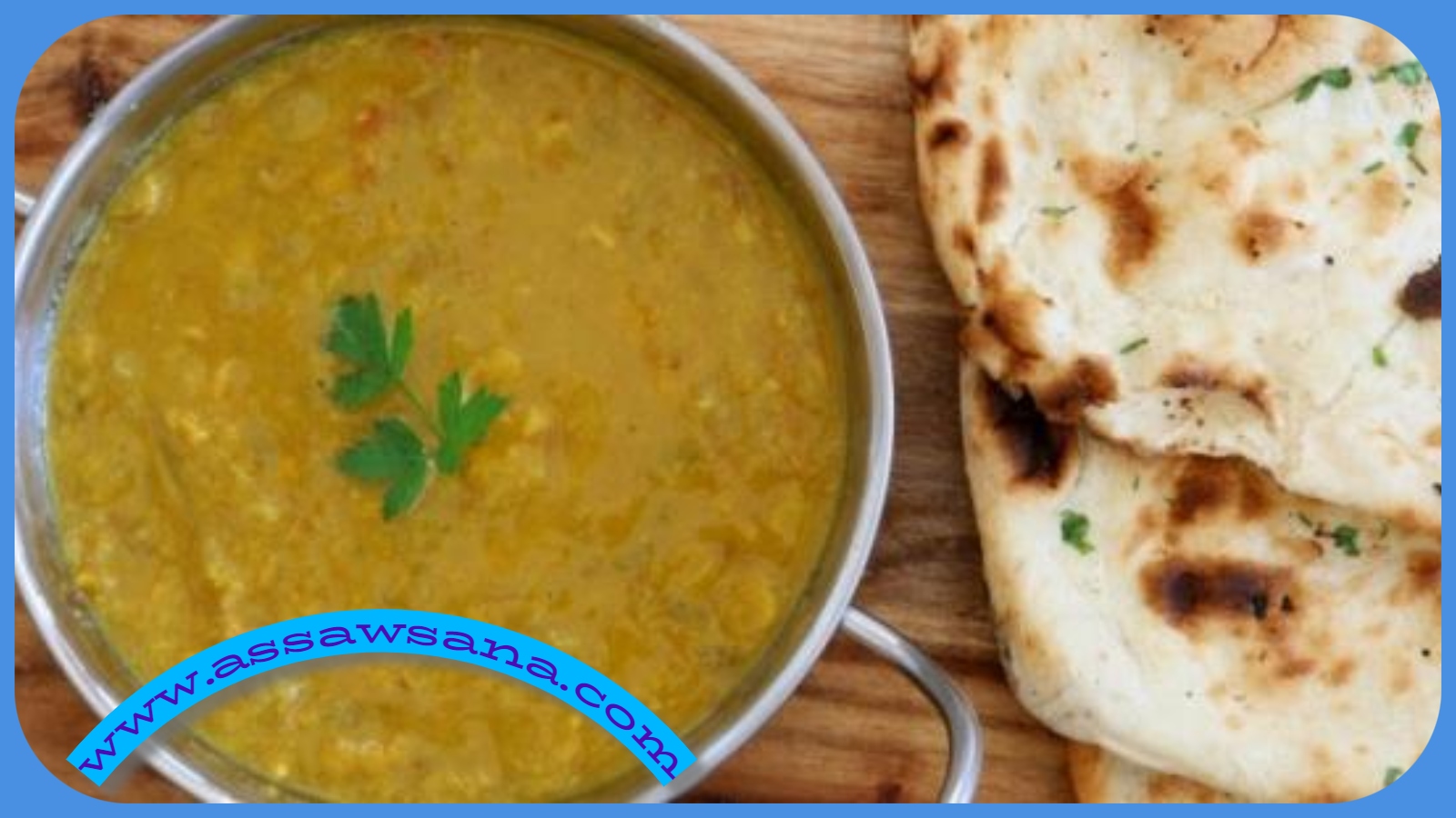 نضع خليط الخبز وشوربة العدس في طبق التقديم
