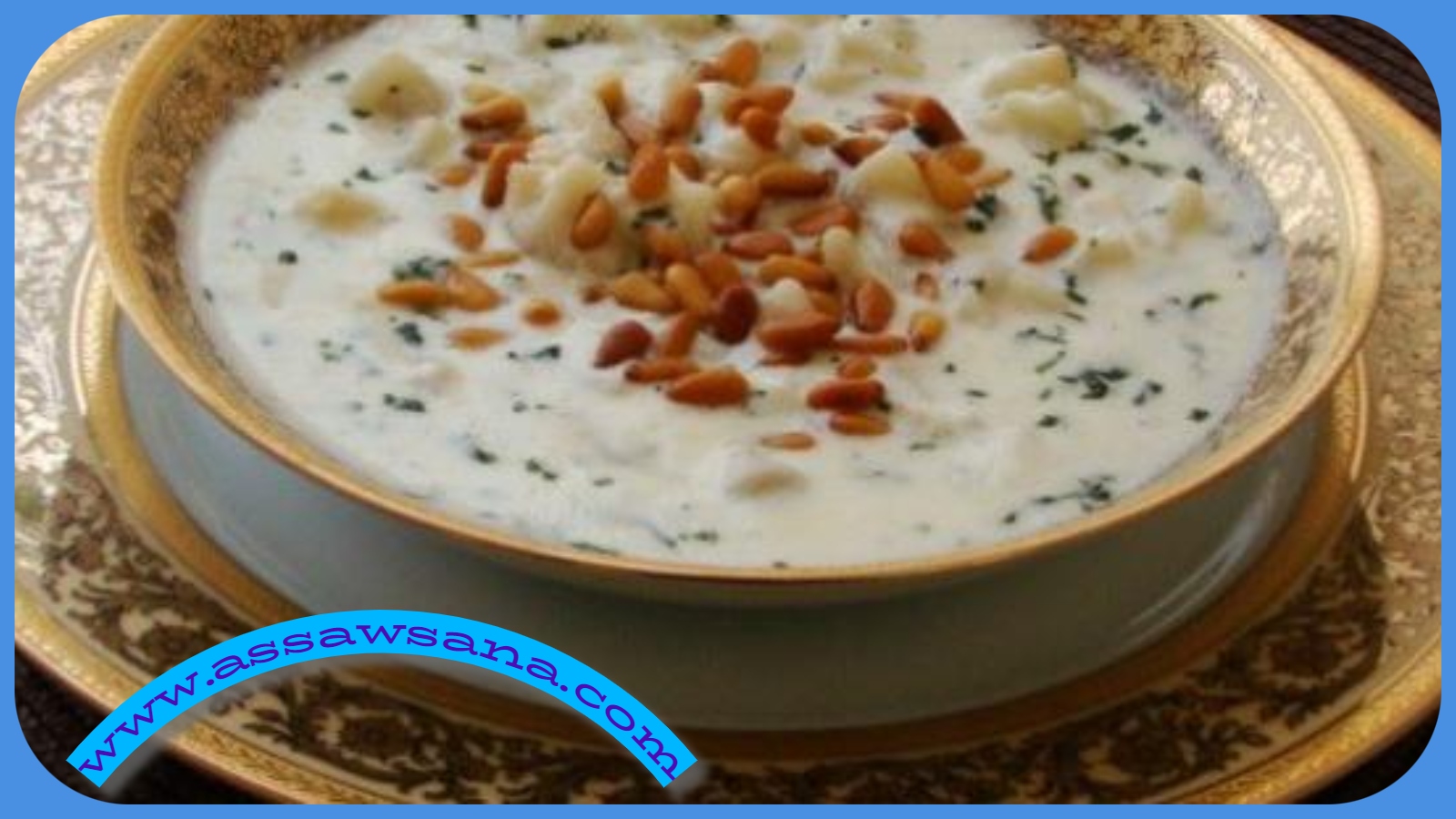 7. إضافة القليل من مرق اللحم إلى خليط اللبن، مع مراعاة عدم تخفيفه.
