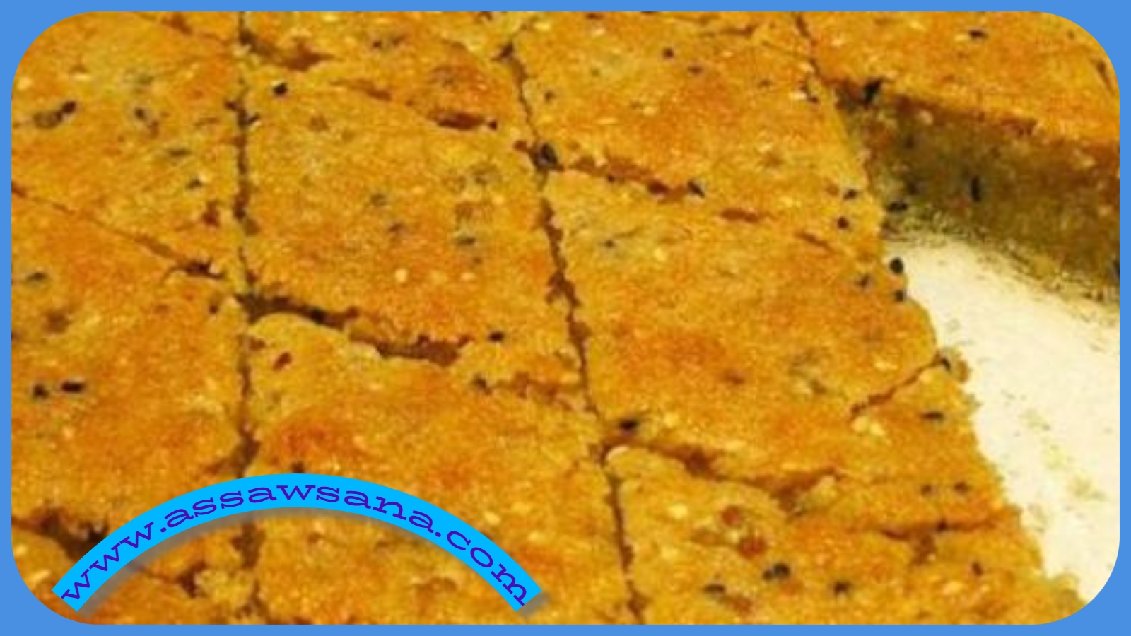 4. فرد العجينة: فرد العجينة في صينية مدهونة بالطحينة، وتقطيعها إلى مربعات أو مثلثات وتزيينها بالفول السوداني.