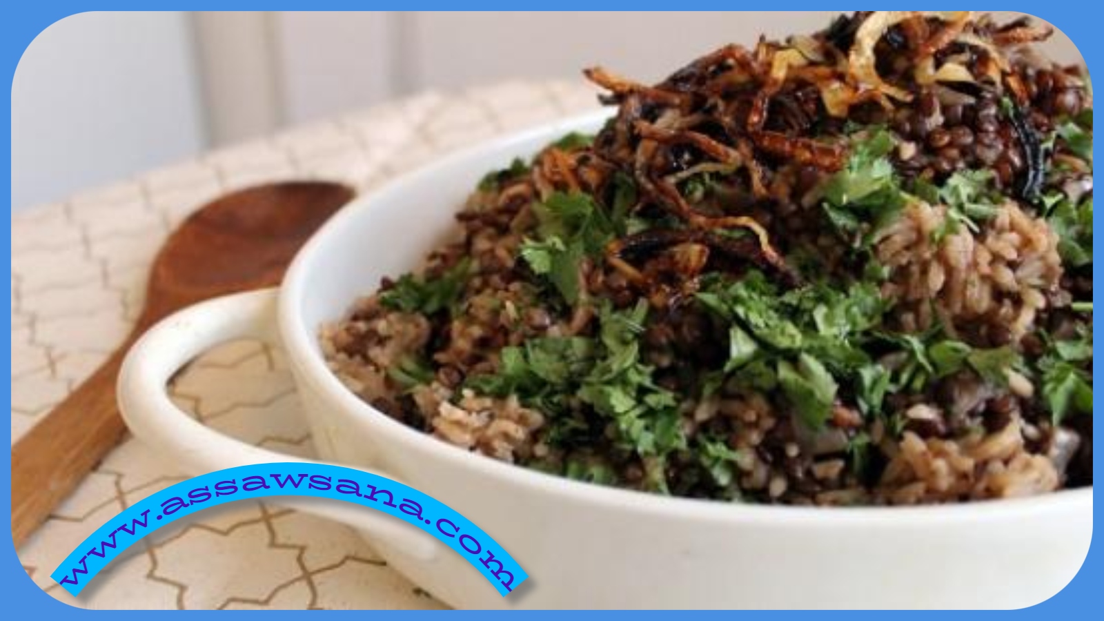 9. سكب المجدرة في طبق وتزيينها بالبصل.