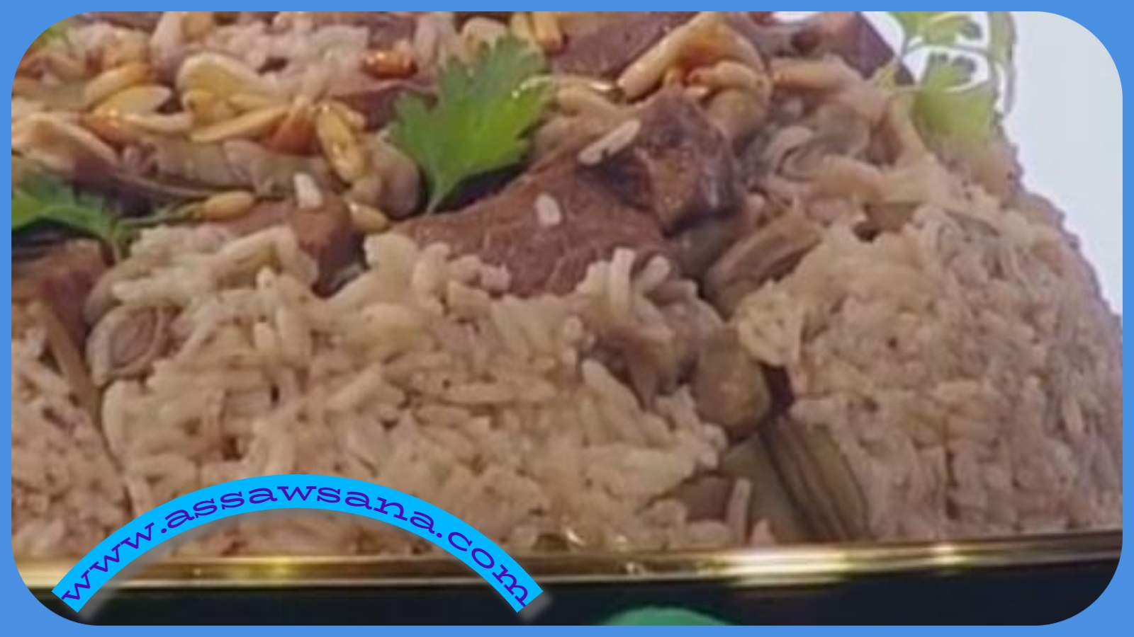 13. سكب المقلوبة في صينية واسعة، وتزيينها بالمكسرات المقلية والكزبرة.
