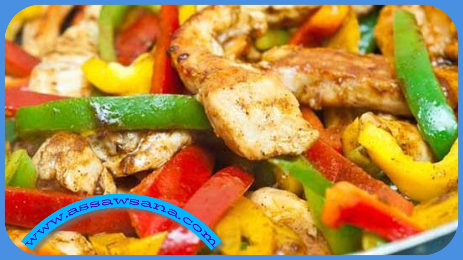 - نضيف شرائح الفلفل الملون على البصل، ونعاود تقليب المكونات، ونتركها لدقائق بسيطة حتى تذبل الخضار.