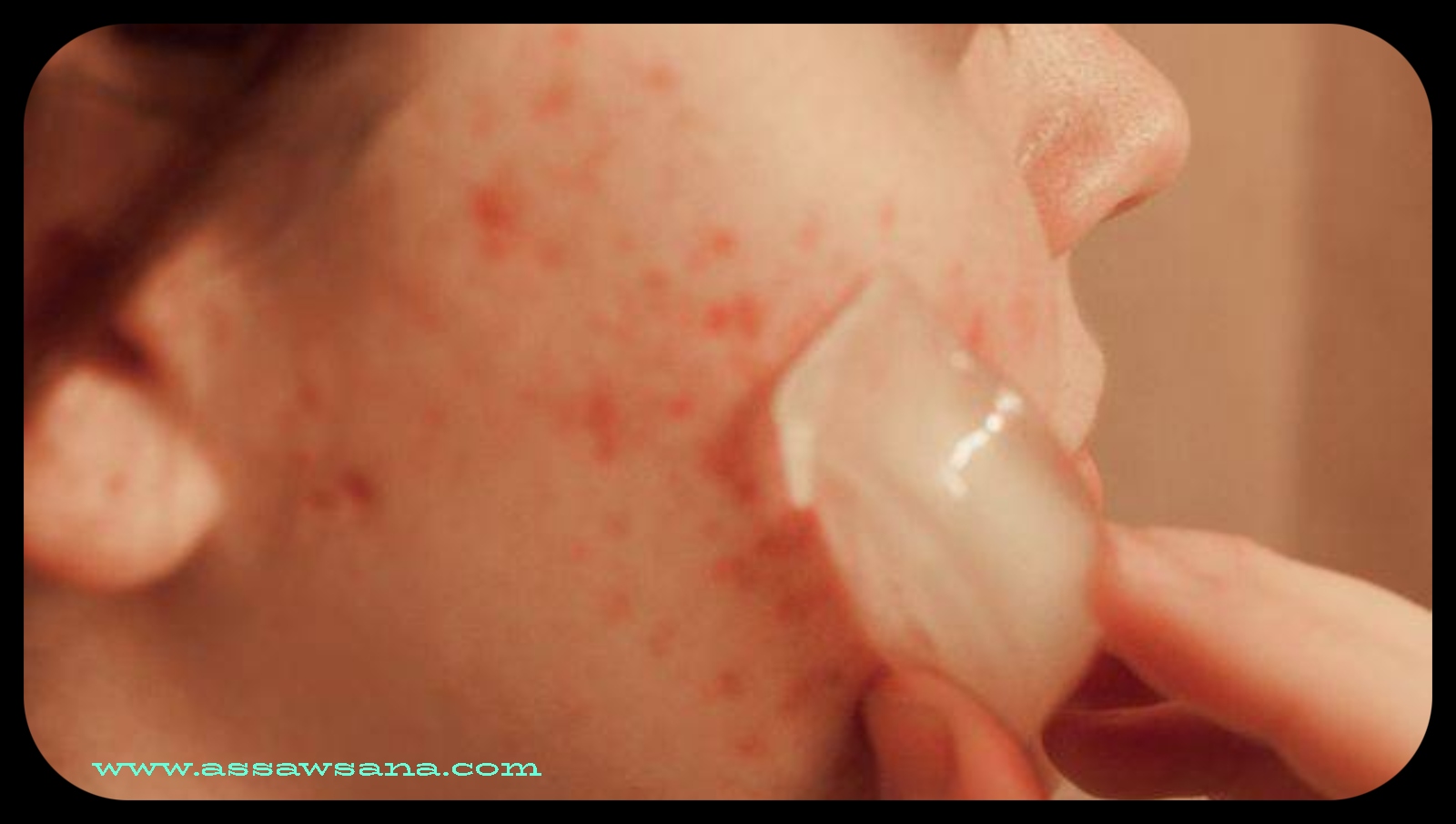 - يساعد الثلج على التقليل من حب الشباب عن طريق تلطيف البشرة الملتهبة حيث يمكن استخدمه عن طريق لف مكعبات الثلج في قطعة قماش نظيفة ورقية وضعه على الجلد المتضرّر لمدّة دقيقة أو دقيقتين، حتّى تبدأ المنطقة في الشعور بالخدر. يمكن أن يساعد في إزالة الأوساخ والزيوت المتراكمة على الجلد.