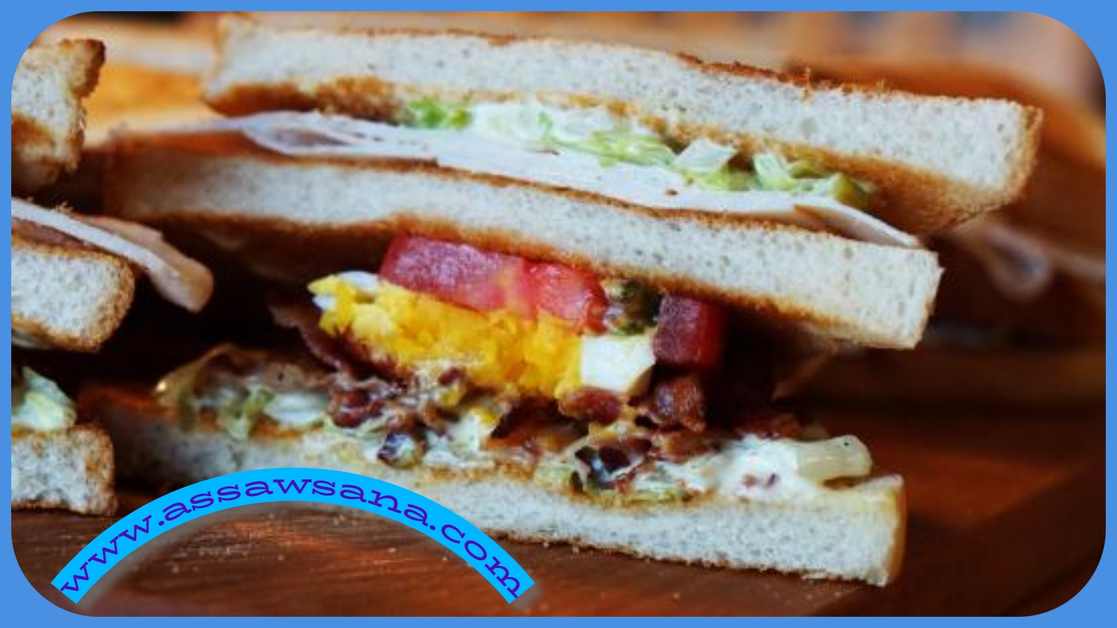 3. ضع شريحة من التوست على طبق التقديم، وضع بعض الخس فوقها، ثم ضع بعض خليط البيض، ثم شريحة أخرى من التوست، وقدمها مع المخللات.