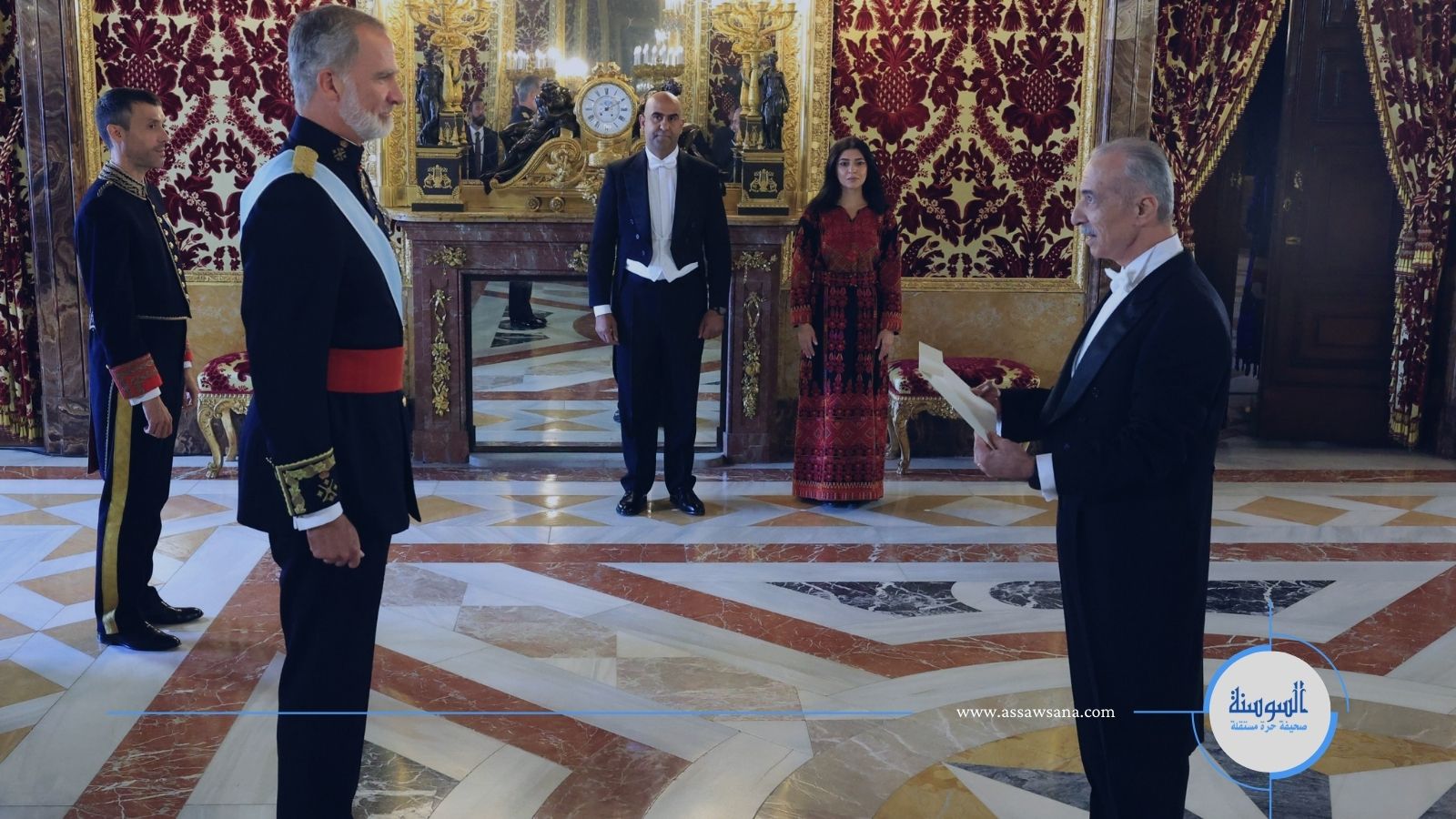 واستقبل العاهل الإسباني السفير عبد الواحد في القصر الملكي في مدريد، حيث جرت مراسم تسليم أوراق الاعتماد، بحسب مشاهد بثها الديوان الملكي على منصة إكس.