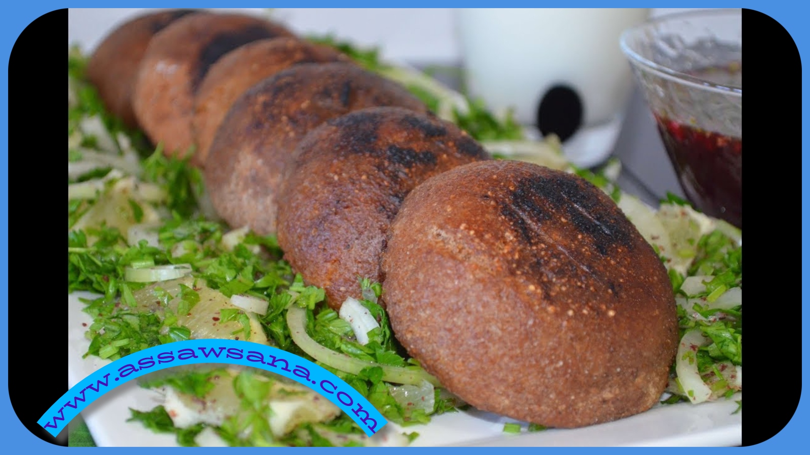 - افتح كل كرة بيدك، وضع من 2 إلى 3 ملاعق كبيرة من الحشوة في الوسط، ثم أغلقها جيداً وشويها على الفحم.