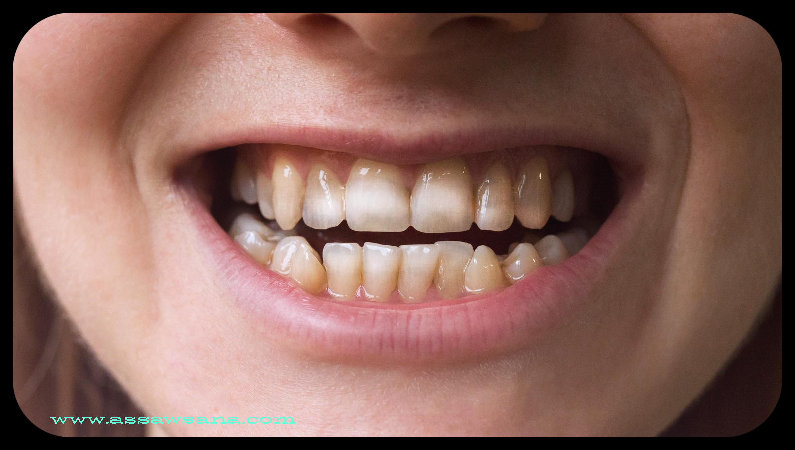 -تناول بعض الأطعمة التي تضر بالأسنان، وتُسبب تكلسها، مثل: الليمون والأطعمة التي تحتوي على أحماض بشكلٍ كبير، وشرب المياه الغازية.