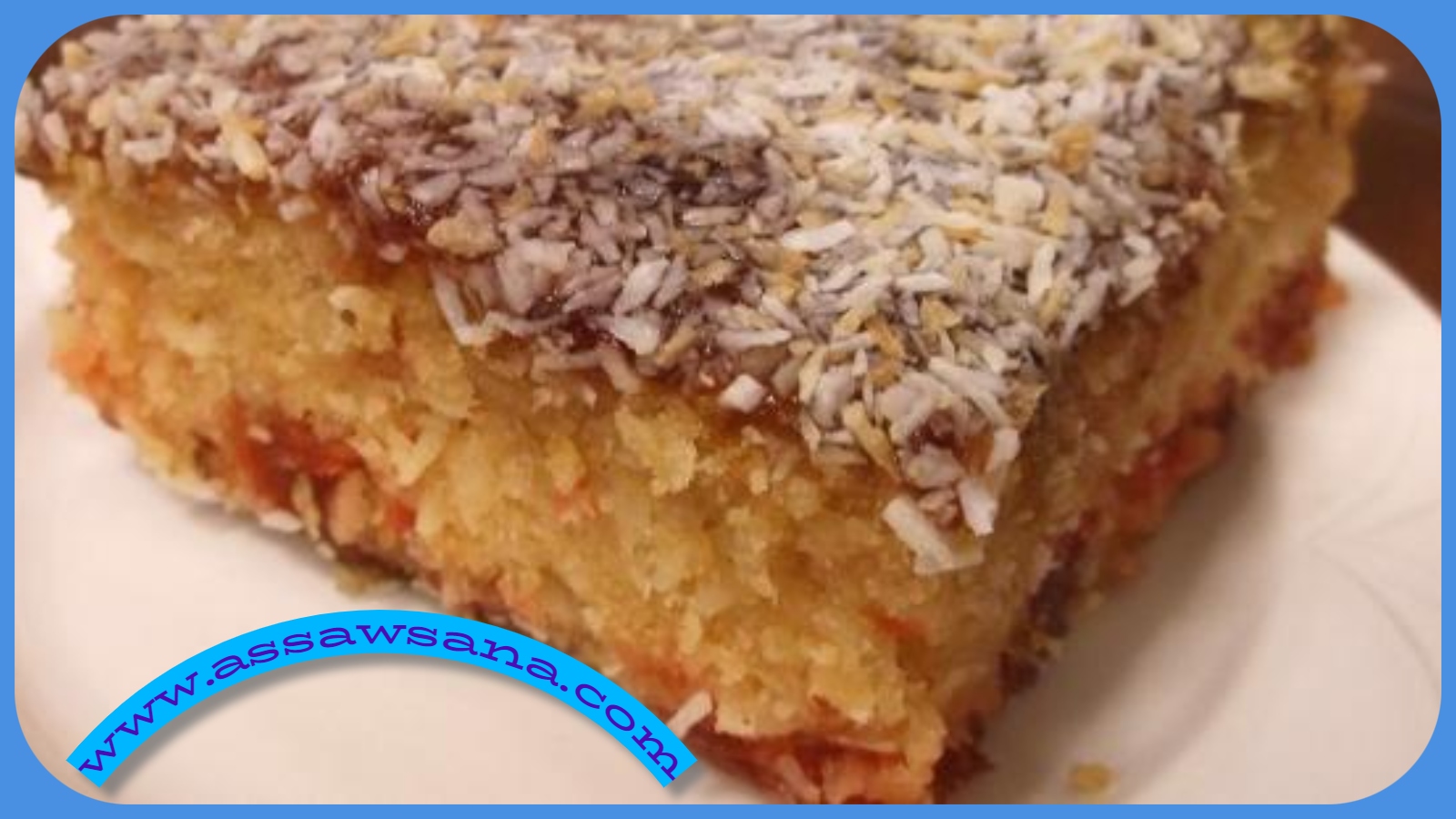 - دهنِي صينية بالزيت أو الطحينية، ثم صبي خليط الهريسة ومدّيها.
