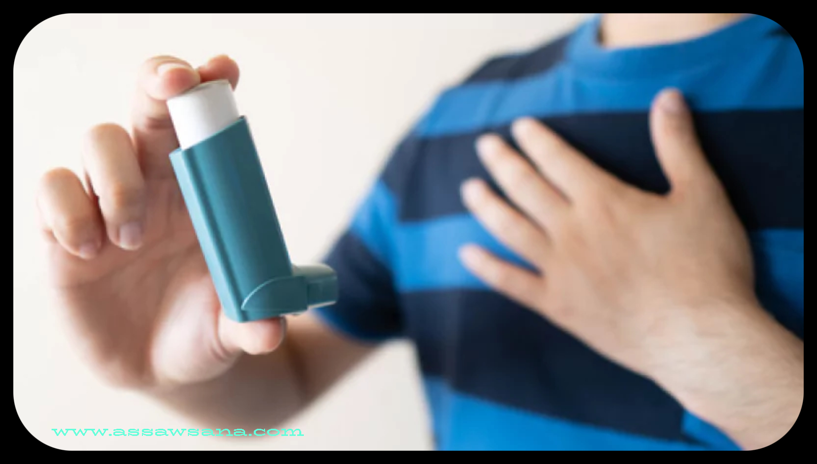 -توضع فوهة البخاخ بداخل الفم مع إحكام إغلاق الفم، يضغط على البخاخ ويؤخذ نفس طويل.
