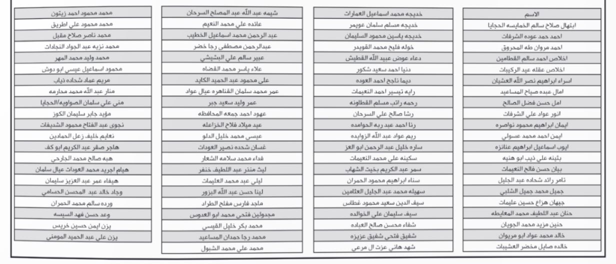 أسماء المرشحين لدبلوم إعداد وتأهيل المعلمين قبل الخدمة