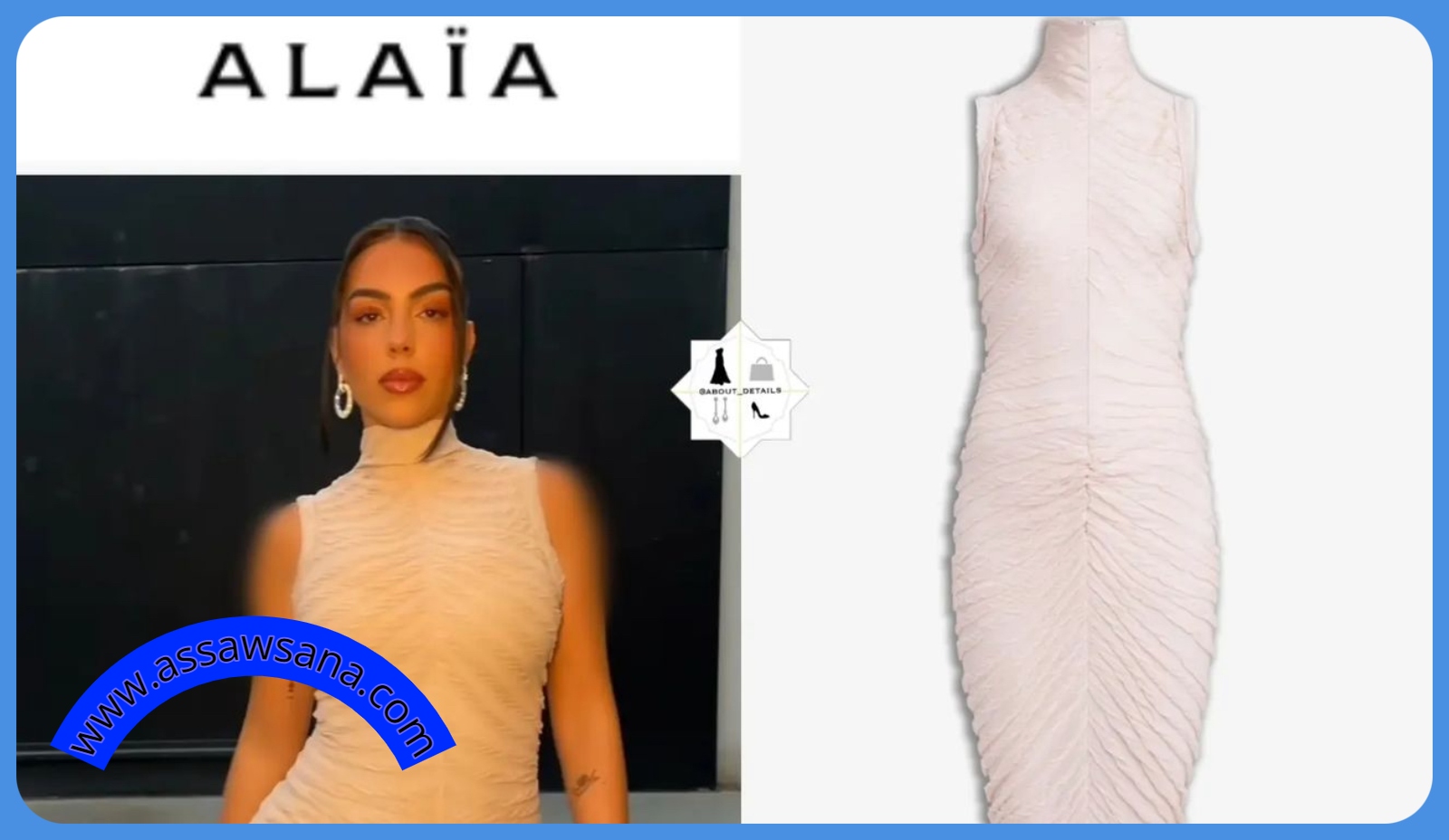 وارتدت جورجينا فستانًا قصيرًا ذا أكمام مكشوفة، مصنوعًا من قماش بيج خالص دون أي نقوشات أو تطريزات، بتصميم يحمل توقيع براند "Alaia" وسعره 3 آلاف يورو.