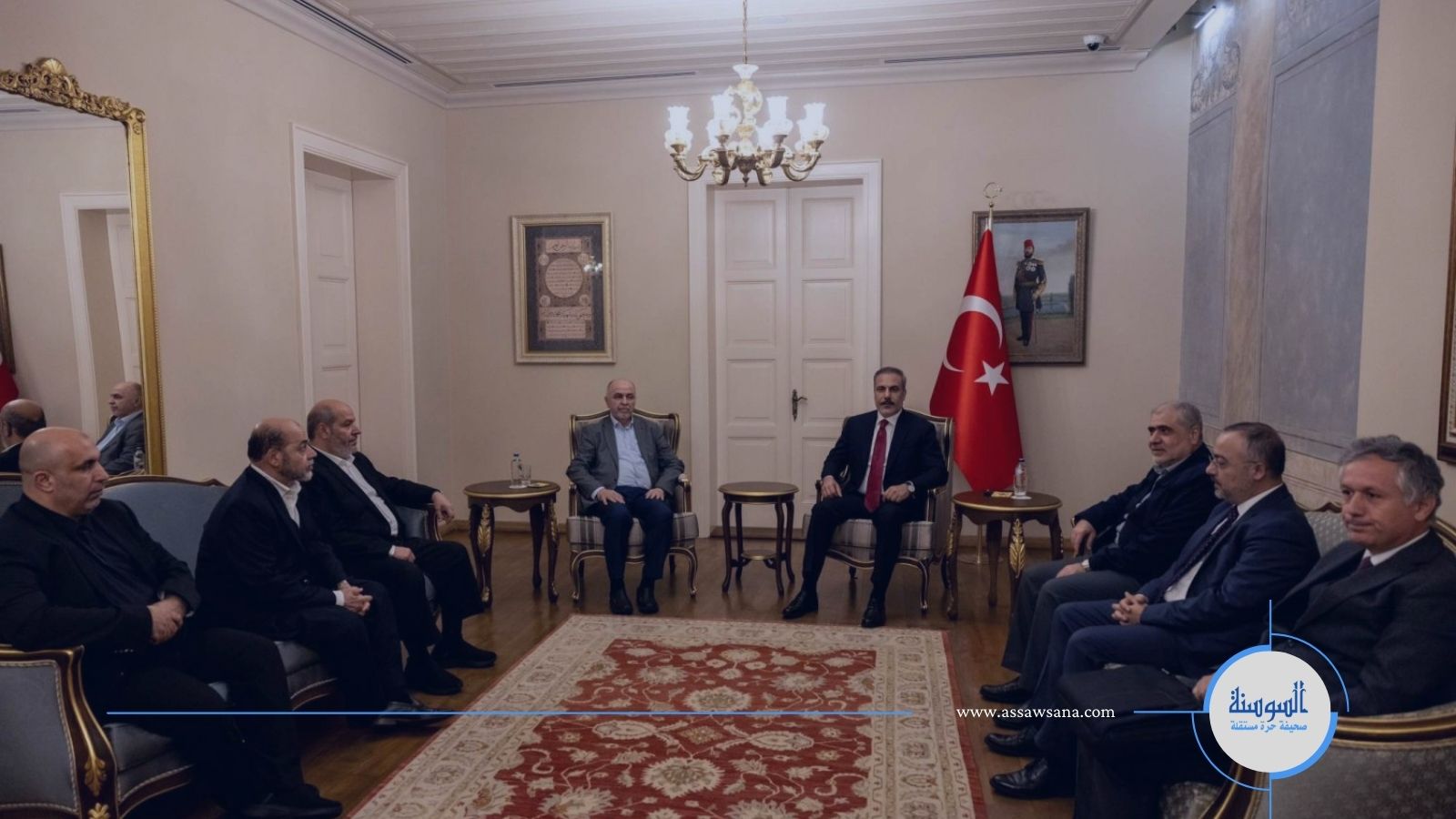 وخلال الاجتماع، قدم فيدان تعازيه لمسؤولي حماس في مقتل رئيس مكتبها السياسي يحيى السنوار، إثر هجوم إسرائيلي بقطاع غزة.