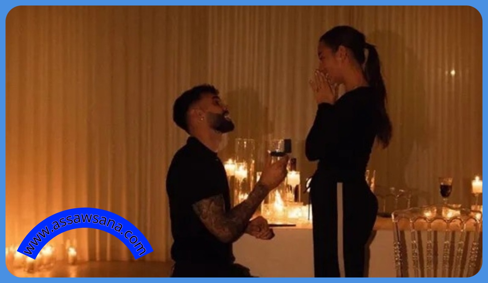 ظهر الثنائي في قمة السعادة بعد أن وافقت تاتيانا على الزواج من نجم كرة القدم، حيث تبادلا قبلة تعبر عن فرحتهما.
