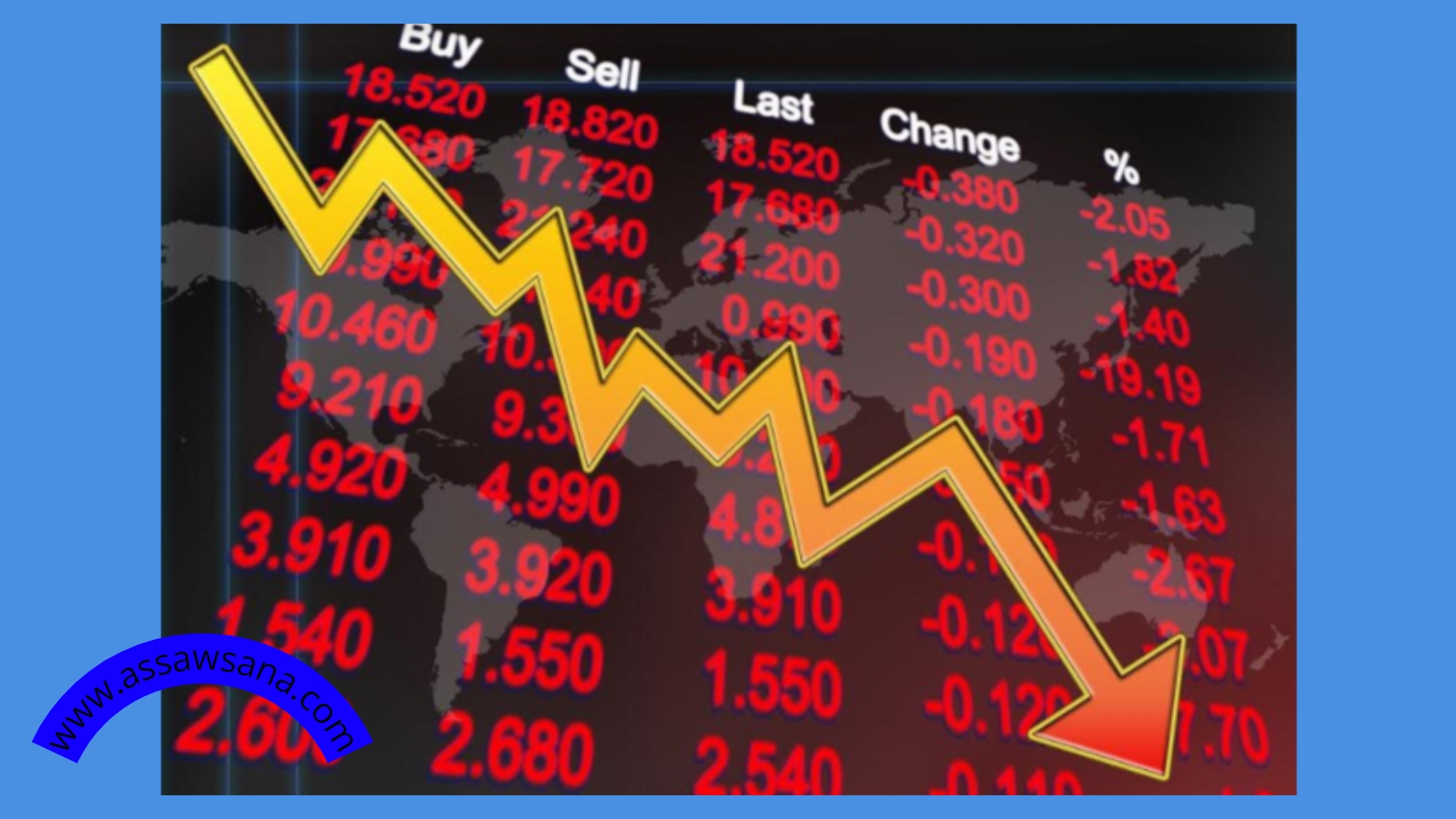 وانخفض أيضا مؤشر ستاندرد وباورز (S&P500) نحو 53 تقطة ليصل الى 5797 نقطة.
