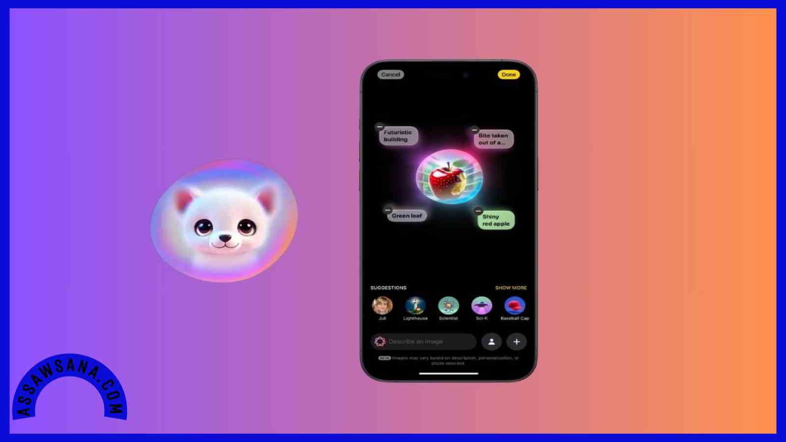 هذا التطبيق الجديد من آبل مصمم لإنشاء الصور باستخدام الذكاء الاصطناعي، حيث يمكنه إنتاج صور تشبه الرسوم المتحركة استنادًا إلى أوصاف نصية يقدمها المستخدم.