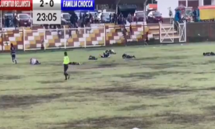 في مشهد مروع، ضربت صاعقة برق ملعب كوتو كوتو في البيرو، وتتسبب بوفاة لاعب وإصابة آخرين أثناء مباراة كرة قدم في بطولة إقليمية.