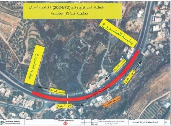 وتعلن وزارة الأشغال أنها ستقوم بإجراء تحويلات جزئية في الموقع حيث سيتم فصل واستخدام المسرب القادم من عمان بأتجاه البحر الميت بحيث يكون باتجاهين مفصولين بحواجز خرسانية وعلى طول منطقة العمل " المنطقة المقابلة لمسجد العدسية والنبعات"، وسيتم أغلاق المسرب القادم من البحر الميت وبأتجاه عمان " عند منطقة العمل" وتحويله مع المسرب المفصول من الاتجاه القادم من عمان.