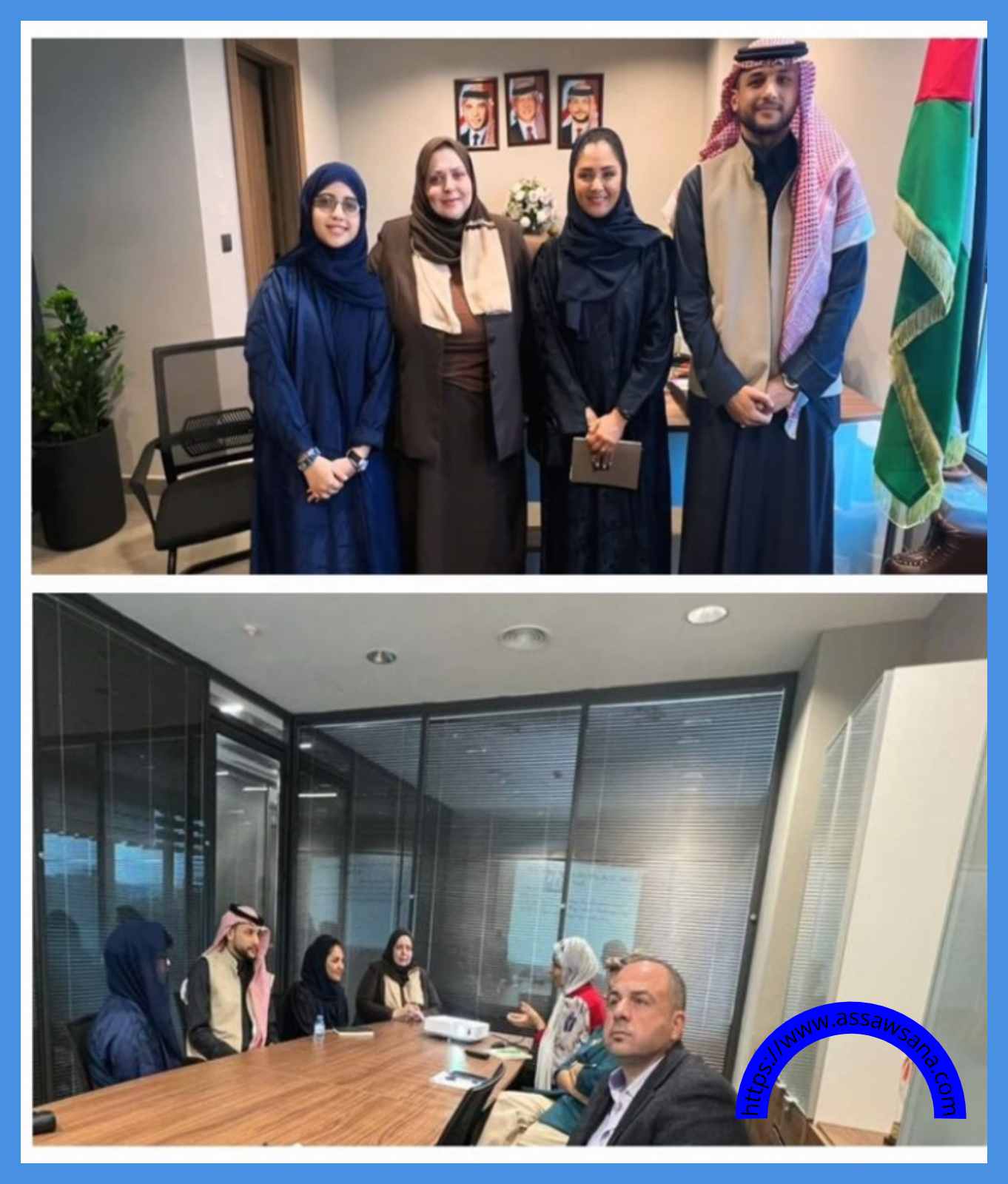 وقد عُقد اجتماعً مشترك بين أعضاء الوفد ، وعميدة الكلية الى جانب الدكتورة منى النسور مديرة مركز صحة المرأة في الكلية والأستاذ الدكتور خلدون حمدان مدير مركز التدريب الصحي التابع للكلية.