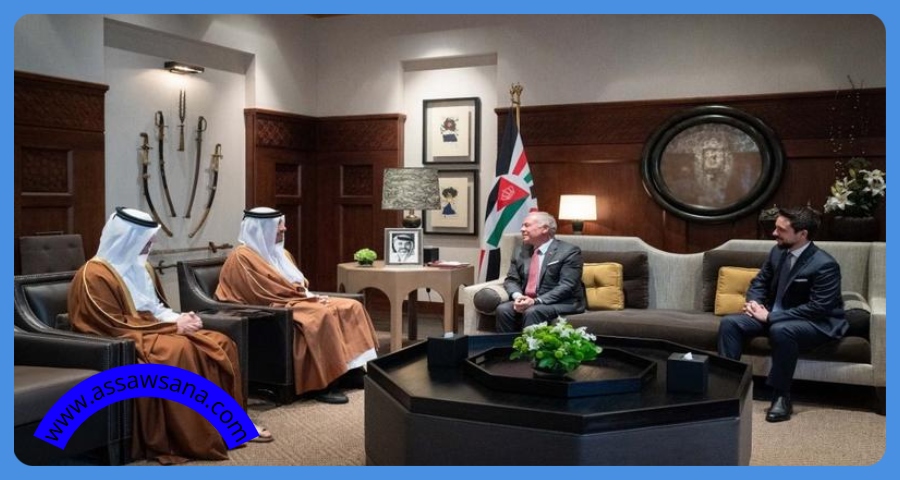 استقبل جلالة الملك عبدالله الثاني في قصر الحسينية، رئيس مجلس الوزراء ووزير الخارجية القطري الشيخ محمد بن عبدالرحمن آل ثاني، بحضور سمو الأمير الحسين بن عبدالله الثاني، ولي العهد.